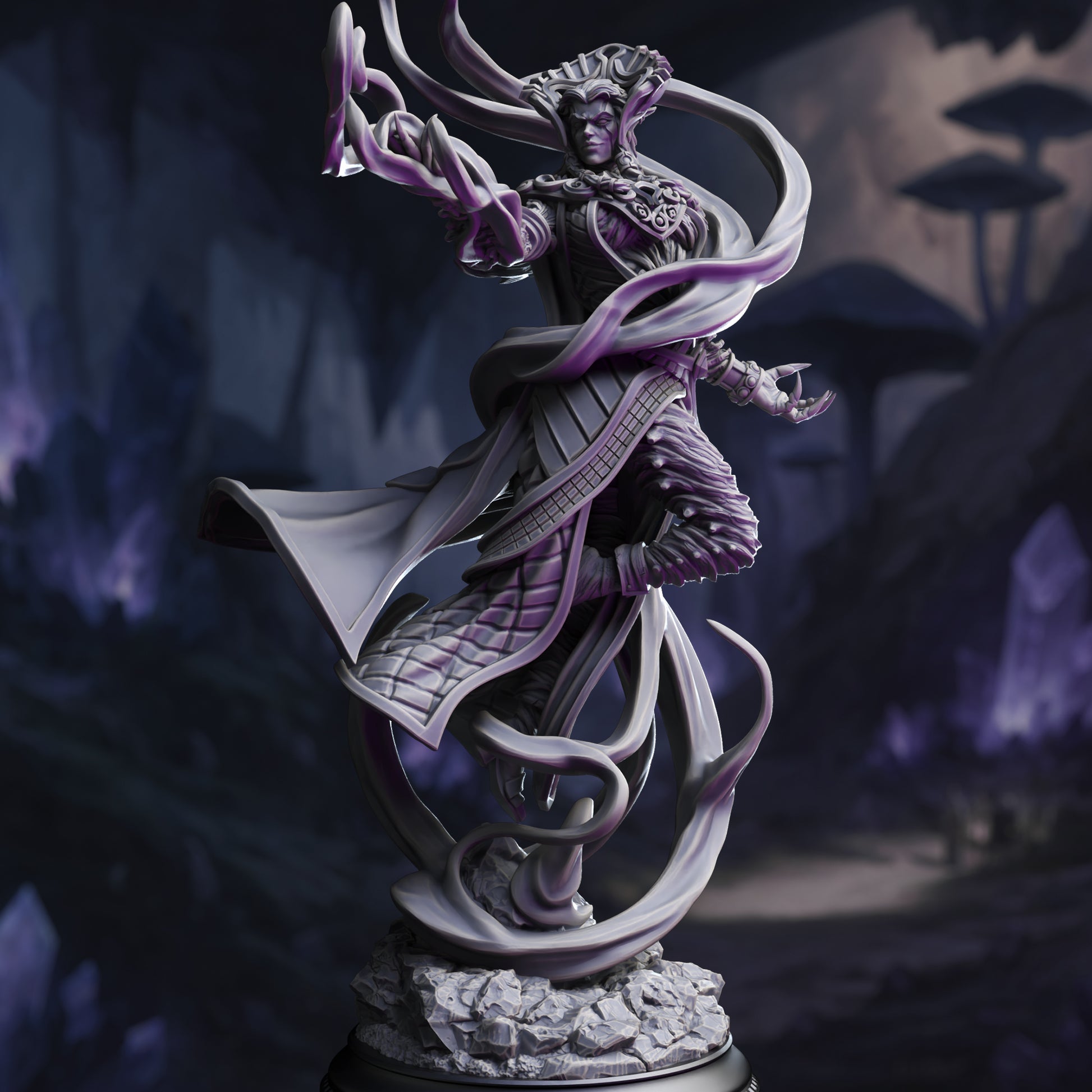 The Void has been the home of Zarinda for time immemorial, a thousand empires have risen and fallen before her, yet in all that time she has served the Eldraeth, a suspended tool in the void awaiting for its command. Now it beckons her once again, sent to the Plane of Minera where its latest proliferator has spawned. Her task is to ensure the world is claimed by the fungal blight, and Vaezirak completes its intended goal.